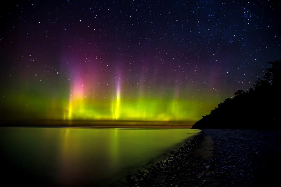 Escocia no es el único lugar donde puede sorprender descubrir que se pueden ver las auroras boreales. También se han registrado avistamientos en países como Irlanda, Alemania o Suiza y, aunque parezca increíble, incluso en Michigan, en Estados Unidos. Este estado, que comparte frontera con Canadá, alberga más de 11.000 lagos entre ellos el lago Míchigan, que se extiende por cuatro estados, lo que se traduce en niveles de contaminación lumínica excepcionalmente bajos.