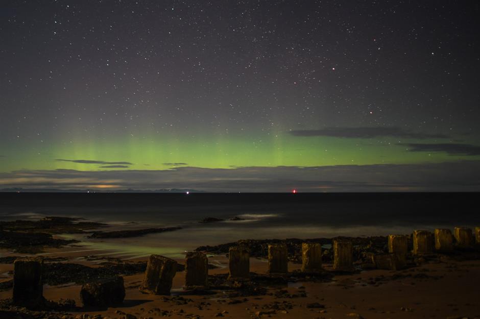 En esta impactante imagen, tomada en febrero de 2021, la aurora boreal danza sobre antiguas defensas militares de la Segunda Guerra Mundial en Lossiemouth. El fenómeno ha sido avistado en distintos puntos de Escocia a lo largo de este año, así como en algunas zonas de Cumbria, en el norte de Inglaterra, a principios de noviembre. Aunque, por norma general, cuanto más al norte se viaja, mayores son las probabilidades de contemplarlo.