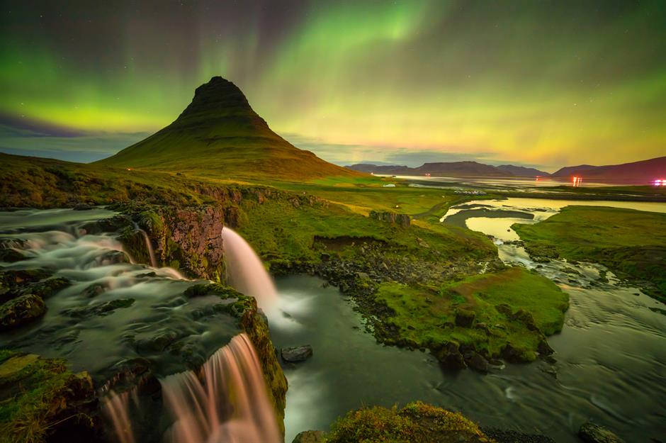 Situada en la península de Snæfellsnes, cerca del pueblo de Grundarfjörður, la montaña Kirkjufell es uno de los paisajes más icónicos de Islandia. Con sus 463 metros de altura y su silueta perfectamente reconocible, se alza junto a las cascadas de Kirkjufellsfoss, otro de los grandes atractivos de la zona. Cuando la aurora boreal aparece sobre este entorno, el resultado es simplemente mágico.