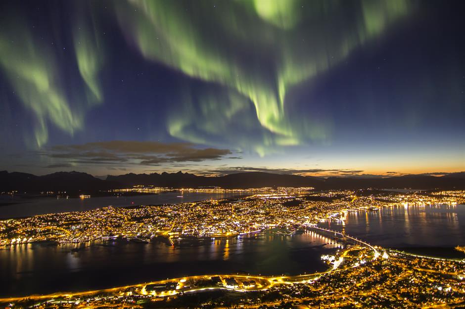 Al igual que la observación de estrellas, la búsqueda de auroras requiere cielos oscuros y paciencia. Normalmente eso implica alejarse de la civilización, pero Tromsø es una excepción fascinante. Con cerca de 78.000 habitantes, esta ciudad del norte de Noruega se encuentra justo bajo el óvalo auroral, una franja que rodea el Polo Norte donde la actividad es más intensa.