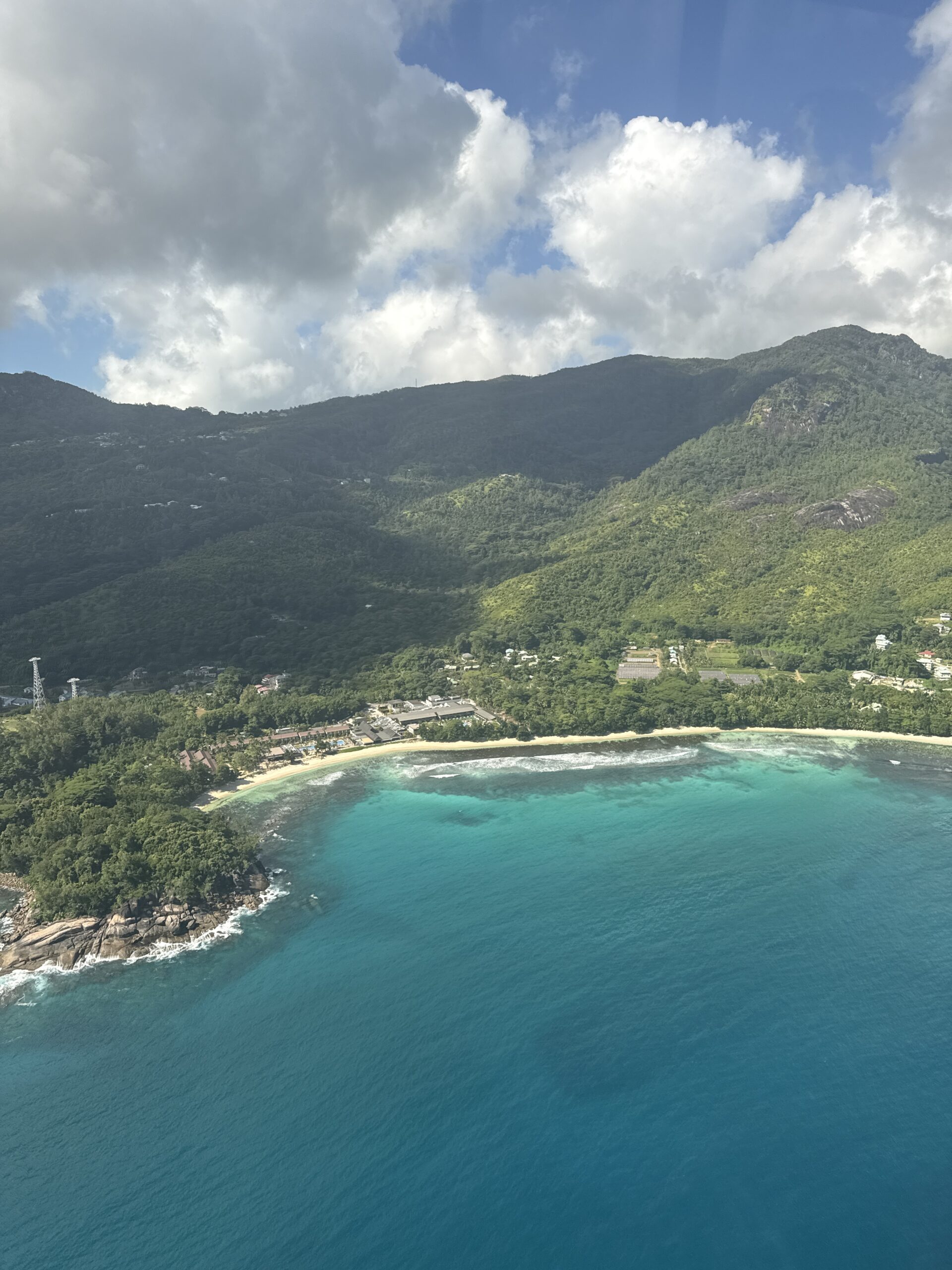 La llegada ya anticipa lo que vendrá después. El acceso en helicóptero, posible gracias al helipuerto privado del resort, ofrece una lectura inmediata del paisaje: montañas verdes, bahías abiertas y un mar que cambia de tonalidad con la luz. Desde el aire, Mahé se revela como un territorio indómito y elegante, una isla que todavía se rige por los ritmos de la naturaleza.
