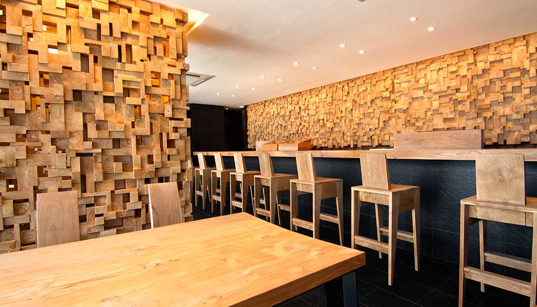 Entre las cosas que llaman más la atención de los comensales, se encuentran sus interiores, totalmente diseñados por el famoso arquitecto de interiores Shigemasa Noi.