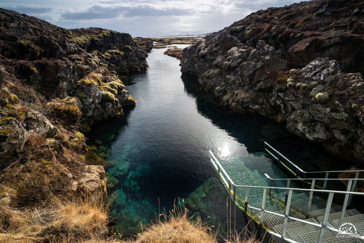 La grieta se encuentra enclavada en el lago Thingvallavatn, dentro del Parque Nacional Thingvellir, y está cubierta de agua dulce, un agua increíblemente transparente que no supera los 4º C de temperatura siquiera en verano. La visibilidad es tan nítida (hasta más de 100 m), que le han valido ser considerada como una de las aguas mas cristalinas del mundo y uno de los mejores destinos para hacer buceo del mundo.