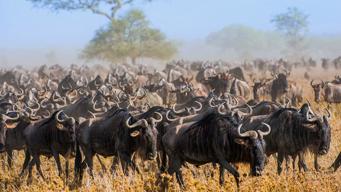 El parque nacional de Serengueti es la mayor expresión de paisaje natural africano sin intervención por parte del ser humano. Con una extensión superior a los 13.000 kilómetros cuadrados, este parque de Tanzania se encuentra bañado por llanuras enormes donde los animales pueden vivir en libertad, habitando sin que la presencia (escasa) del ser humano entorpezca su desarrollo. En 1979 la UNESCO declaró el Parque de Serengueti Patrimonio Mundial de la Humanidad. Dos años después, se reconoció este espacio como Reserva Natural de la Biosfera.