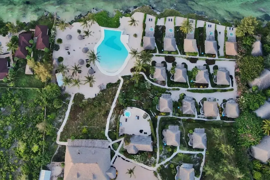 Ubicado discretamente en lo alto de una suave colina con vistas al océano Índico, Zanbluu es un hotel boutique que redefine el concepto de elegancia tropical. Desde su arquitectura minimalista con alma africana hasta el blanco de sus muros que contrasta con el turquesa eterno del mar, todo en este espacio transmite equilibrio, intimidad y belleza natural.